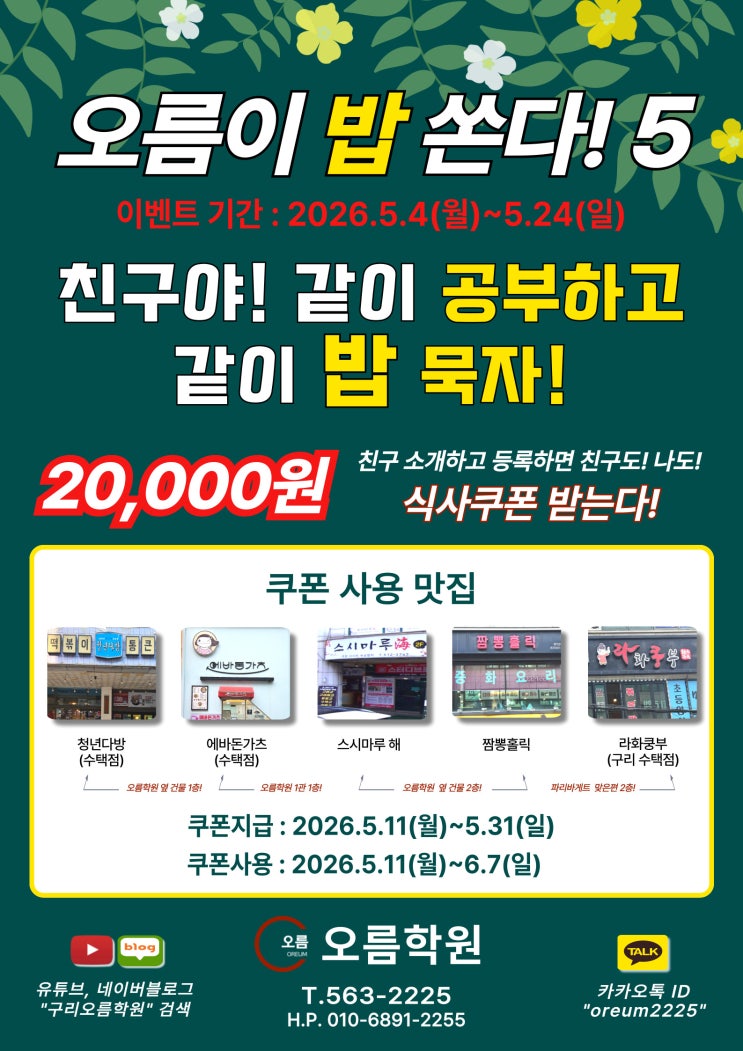 [오름학원] 5월의 이벤트! 오름이 밥! 쏜다!5