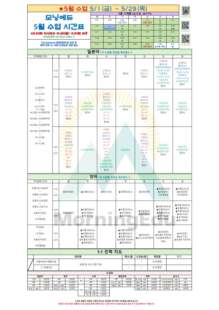 [2026 고1] 5월 연휴 단기특강 시간표 및 강의소개