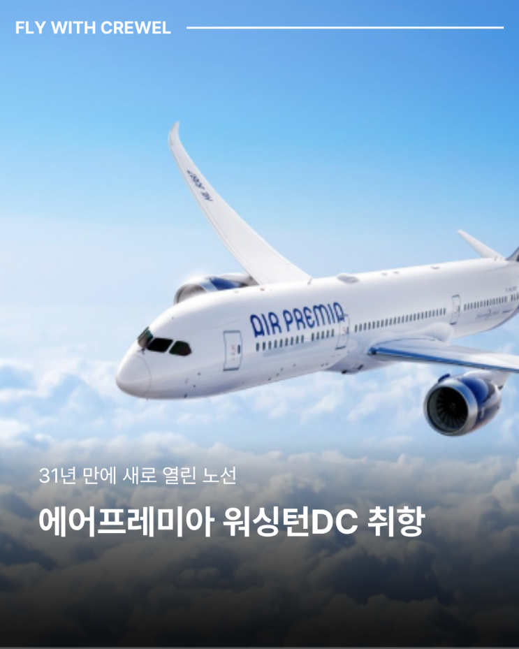 에어프레미아가 기존 미주 노선에 이어 워싱턴DC 노선을 새롭게 취항하며 네트워크를 확장했습니다. 기존에는 로스앤젤레스, 샌프란시스코, 뉴욕 호놀룰루 등 서부 및 일부 동부 노선을 중심으로 운영해왔지만, 이번 워싱턴DC 취항을 통해 미주 동·서부를 모두 연결하는 노선 구조를 갖추게 되었습니다. 이는 단순한 노선 추가를 넘어 항공사의 전략적인 확장이라는 점에서 의미가 있습니다. 특히 외교와 비즈니스 수요가 높은 워싱턴DC 취항은 고객 선택권 확대와 함께 항공사의 경쟁력 강화에도 중요한 역할을 할 것으로 보입니다. 승무원을 준비하는 학생이라면 이러한 노선 확장이 항공사의 성장 전략과 어떻게 연결되는지까지 함께 이해해보....... <img src="https://blogthumb.pstatic.net/MjAyNjA0MjVfMjQx/MDAxNzc3MDgyMDczODk2.5VDVvkvZzeZVA1h8l06yZQPjF_1lMrfE2teNXspCCNYg.8Z0se37taZIfsBJBzikIR4PbW8WhZS1fbufQJ1hwUZ0g.PNG/1.png?type=s3" />