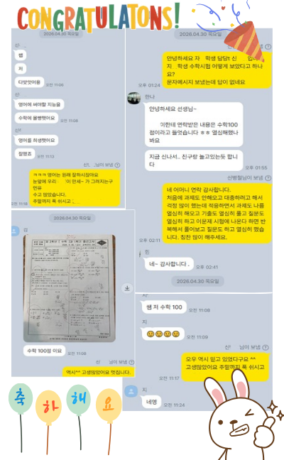 wow!!!!! 우리 학생들이 오늘 수학 100점 소식을 또!! 들려주었습니다.!! 열심히 노력한 우리 친구들 이렇게 좋은 결과를 얻게 되어 정말정말 축하합니다^^ 고생 많았어요~!!^^ <img src="https://blogthumb.pstatic.net/MjAyNjA0MzBfNDYg/MDAxNzc3NTQzMTk5Mjkx.b_lcq04quXFO_QP6JrX9r2WF8hf2tB-UcCNWgkiK5P8g.5NBJPo6C8mN5pDn0n0V9vNKnyl_tzqpPu_ZAMK4Nzvog.PNG/img02.png?type=s3" />