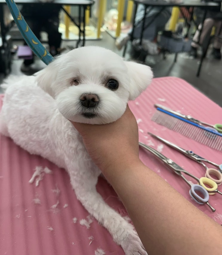 안녕하세요^^ 말티즈 7F 정방향(6mm) 전체 클리핑 + 얼굴 알머리컷 지금 시즌부터는 샵에서도 그렇고 아이들이 시원하게 지내기 위해서 바디 전체 클리핑을 찾으시는 견주분들이 많으시기때문에 학원에서도 시즌에 맞게 바디 클리핑이 한참 입니다. 항상 안전하게! 다치지 않는것이 가장 중요하죠! 빠르게 미용하기 위해서 속도있게 밀다보면 다칠 위험이 매우 증가하고, 또 털이 엉켜있다 그래서 힘을 줘서 클리핑 하는 순간 피부가 찢어질 위험이 너무 너무 높아져요. 올바른 보정과 올바른 도구 사용법이 정말 중요한 미용이라고 할 수 있겠습니다. 올바른 보정법과 도구 사용법을 숙지 하셔서 미용받는 아이들과 미용하는 미용사가 모두 안전....... <img src="https://blogthumb.pstatic.net/MjAyNjA0MjNfNDMg/MDAxNzc2OTM3Nzk0ODgy.YZJ5_PeKSkGu1do6g0q3_-VGvVx45wzE6u67Ln-_or4g.JUpayvPfQNubYn6YulPXP4dBYj_XAPjfEX50abpZB5cg.JPEG/KakaoTalk_20260423_184702701.jpg?type=s3" />