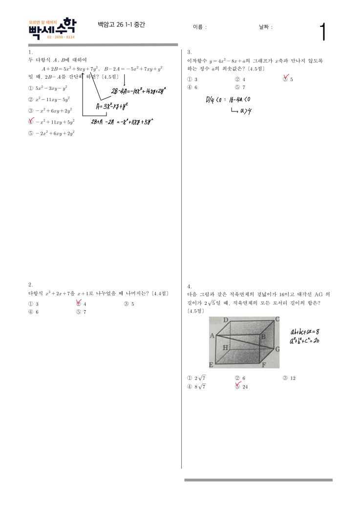 백암고 2026 1-1 중간고사 전 문항 풀이