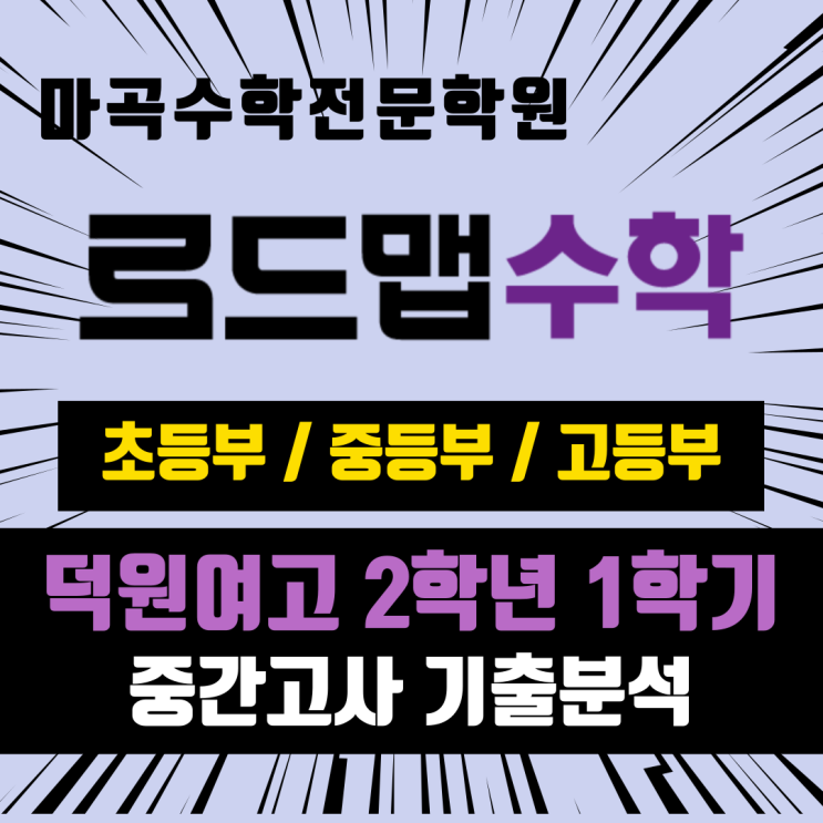 안녕하세요. 마곡 로드맵 수학학원입니다. 덕원여자고등학교 2학년 1학기 중간고사 수학 시험 분석한 내용입니다. 확인해 보시고 학습에 도움이 되었으면 합니다. 1. 시험범위 및 단원별 출제 문항수 2. 세부 문항분석 상당히 까다로운 문제였습니다. 2021년 EBS 교재 수능특강에 있는 문제를 변형하여 출제하였습니다. 레벨 3의 실력완성 문제로 난이도가 상당히 높은 문제였습니다. 각 변환을 시키고 코사인을 치환하여 최댓값을 찾은 다음에 범위 안에서 정수점을 찾아야 하는 문제로 푼다고 해도 시간이 상당히 많이 걸리는 문제입니다. 교육청 기출문제였습니다 문제의 난이도가 엄청 높은 문제는 아니지만 처음 접한다면 상당히 까다롭게 느....... <img src="https://blogthumb.pstatic.net/MjAyNjA0MjRfMTg0/MDAxNzc3MDA5MjYyMDEz.l6Q7kUPppi2e73930Ov-Ez-Pawzrw8Emde2upvE0boEg.4HmVpnbcle4ZpLpA4S5gPyPXHYIUtR0W1Z25BIL-qvQg.PNG/%C1%A6%B8%F1%C0%BB-%C0%D4%B7%C2%C7%D8%C1%D6%BC%BC%BF%E4_-001.png?type=s3" />