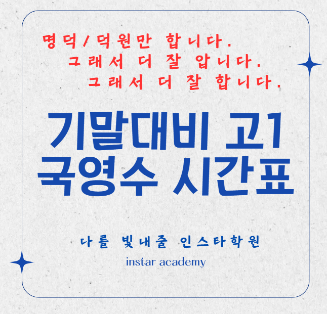 [인스타학원] 고1 기말대비 국/영/수 시간표