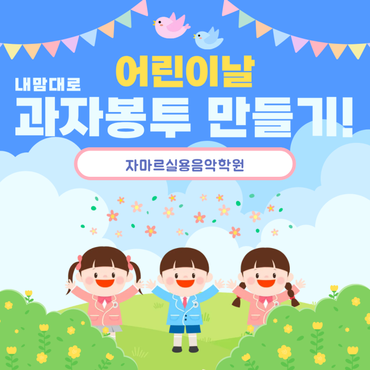 안녕하세요! 난곡/신대방/신림 실용음악학원 자마르 실용음악학원입니다 :) 다가오는 5월 5일 어린이날을 맞아 학원에서 아이들을 위한 소소한 이벤트를 준비해봤어요! 바로 원장님께서 준비해주신 간식들로 ‘과자 봉투 만들기’ 시간을 가졌는데요 여러 가지 간식들 중에서 각자 먹고 싶은 걸 직접 고르고 담아가는 시간이었어요! 어떤 간식을 고를지 고민하는 모습도 너무 귀엽고, 봉투를 가득 채우며 즐거워하는 아이들 덕분에 학원 분위기도 한층 더 밝아진 하루였습니다 작은 이벤트였지만 아이들에게 즐거운 추억이 되었길 바라봅니다 :) 다가오는 어린이날 연휴도 가족들과 함께 웃음 가득한 행복한 시간 보내시길 바랍니....... <img src="https://blogthumb.pstatic.net/MjAyNjA0MzBfMTk5/MDAxNzc3NTQ0NzAyMzk0.7LFN9mm9PN1RZ5Ob-XzVakgOTVF3CWO1b9akvDPFQJog.ZjWh7qjKcRoiCFZLuGgn_W2HLtprvRtBgYOduUcAIq4g.PNG/%C1%A6%B8%F1%C0%BB_%C0%D4%B7%C2%C7%D8%C1%D6%BC%BC%BF%E4._%281%29.png?type=s3" />