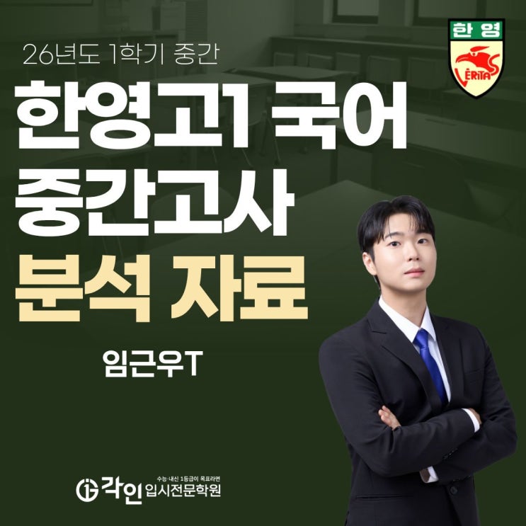 한영고 1학년 1학기 국어 중간고사 분석 by 임근우T ➡한영고 1학년 기말대비 정규반 : 월 오후6:00 ~ 오후9:30 (개강 5.4) 금 오후6:00 ~ 오후 9:30 (개강 5.8) 토 오후2:00 ~ 오후 5:30 (개강 5.9) (주1회+클리닉) 한영고 국어, 각인이 압도적입니다. 상담/문의 02-6497-2471 이번 한영고 국어 시험은 단순히 어렵다기보다, '제대로 공부한 학생을 가려내는 시험' 이었습니다! 전체 시험 경향 “외부 지문으로 변별력 확보 + 교과서로 기본기 평가” 교과서 꼼꼼히 본 학생 유리 지문 독해력 있는 학생 상위권 ⭐ 1등급을 가른 결정적 포인트 ✔ 문법에서 시간 확보 여부 ✔ 서술형 개념 정확도 ✔ 외부 지....... <img src="https://blogthumb.pstatic.net/MjAyNjA0MjdfOTQg/MDAxNzc3MjcwMDIxMDE1._GKCUTRQiVm8I9sn2W8j6fJ8I4ODdlEwwSMb1stf9Y0g.IIN2JMI8bDQoS409O8VGMRlPyvOqrbEjkpxxpfiI_0gg.JPEG/26%B3%E2%B5%B5_1%C7%D0%B1%E2_%C1%DF%B0%A3_%C3%D1%C6%F2.jpg?type=s3" />