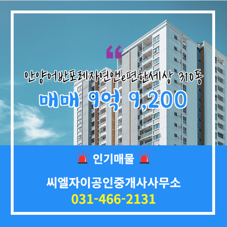 고객님! 안양동 아파트 매물 찾고 계세요? 현재 확인 가능한 아파트 매물 리스트를 안내해 드립니다 :D 오늘 소개하는 매물 안양어반포레자연앤e편한세상 310동 9억 9,200 더 자세한 정보는 아래 표를⬇ 참고해 주세요. 안성희 031-466-2131 안양어반포레자연앤e편한세상 배정학교는 안양초등학교가 인근에 있습니다. 평면도 기본형 확장형 씨엘자이공인중개사사무소 오시는 길 위치 : 경기도 안양시 만안구 안양6동 1416 근린생활시설2동 103호(안양동,안양씨엘포레자이) 씨엘자이공인중개사사무소의 모든 매물을 보시려면 배너를 통해 확인해보세요! ↓↓↓↓↓↓↓↓↓↓ 공인중개사법 개정에 대한 표시의무 사항 명시 공인중개사법 18조2,4항....... <img src="https://blogthumb.pstatic.net/MjAyNjA0MjZfMjQg/MDAxNzc3MTYyNTMxMDMz.tfdu6l35SlMekUvfP0RpX7P7dTRmDRQueo-6xjBGZwIg.1bepzj1jTaQBhPfNvKZakGAZmO8ZiPHXxPZwx0kZNmUg.PNG/ce9a7025-f7f1-41b0-9bf2-49899dee5a6f.png?type=s3" />