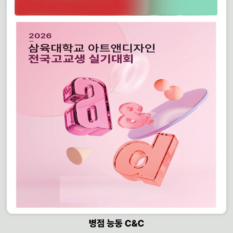안녕하세요 ~~ 본격적인 대학 실기대회가 한창인 요즘입니다 2026년 입시를 준비하는 학생이라면 반드시 놓치지 말아야 할 실기대회가 있죠. 2026삼육대 미술 실기대회를 소개해 드리겠습니다. 이번 2026 삼육대 미술 실기대회는 삼육대학교에서 주최하는 전국 규모 실기대회로, 실기 실력 점검과 수상 실적 확보를 동시에 노릴 수 있는 중요한 기회이겠죠? 우선 일정 확인과 전년도 주제 와 수상작 등 어떤 대회인지 알고 제대로 준비해 봐요~ 병점 능동 씨앤씨 친구들~~~대회 일정은 위와 같습니다 실기 날짜는 6월 17일(수) ~ 18일(목) 대회 접수는 5월 5일 ~ 6월 4일까지 한 달간 진행하오니 여유를 두고 접수해도 좋겠지만 요즘 대회 접수가....... <img src="https://blogthumb.pstatic.net/MjAyNjA0MjRfMjQy/MDAxNzc3MDIzNTE3NDkx.kyv2q8eZUaTS3Qt843CdFW0NbvTjFgc_zubKFTiC72og.L8sDeKuZOVDB9HrG5BfoVhahOQf4lTUzzkt282g3nZEg.JPEG/%BB%EF%C0%B0%B4%EB%BD%C7%B1%E2%B4%EB%C8%B81.jpg?type=s3" />