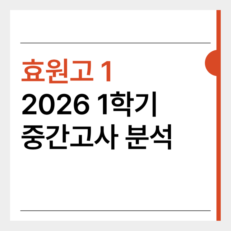 안녕하세요. 고등전문 더시너지영어입니다. 04/23(목)에 효원고 1학기 중간고사 영어 시험이 진행되었습니다. 더시너지영어학원만의 분석을 공개합니다. 학교) 효원고등학교 내용) 2026 1학년 1학기 중간고사 영어 선택형) 21문항(배점:70점) 서술형) 3문항(배점;30점) 2025.03/2025.06/2026.03 고1 모의고사 24문항(100) 2026 효원고1 1학기 중간고사 더시너지영어 연구소 총평 21번 내용일치 문항을 제외하면 기존의 문제 유형과 동일하게 출제되었습니다. 우선 객관식 문제는 지문분석을 꼼꼼히 하고 각 지문의 주제와 핵심어를 정확하게 이해하고 있다면 풀 수 있는 문제들로 출제되었습니다. 서술형 또한 지문이해와 핵심어 파악이 중요하였....... <img src="https://blogthumb.pstatic.net/MjAyNjA0MjlfODQg/MDAxNzc3NDUxNjA1MDg2.eTuiYXTdv-WaImHBr323MRI99xw1Qc5l2G0W3hUg1LUg.YTIym2G_EawsQc0Iyl4Ud43V69d5oQvWAvmGgcrbxakg.PNG/%C8%BF%BF%F8%B0%ED1.png?type=s3" />