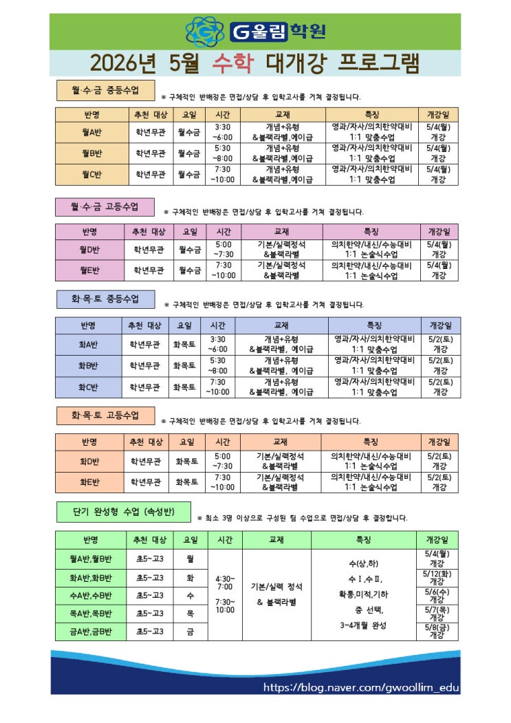 2026년 5월 수학 개강 프로그램