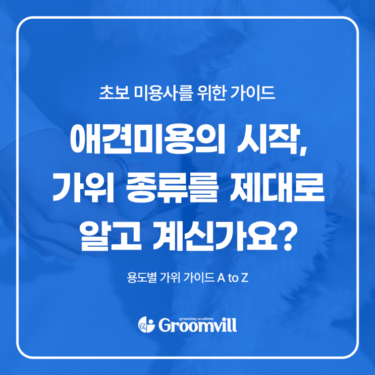 안녕하세요 펫뷰티 교육의 선두 주자 그룸빌애견미용학원입니다. 애견미용을 처음 시작할 때 가장 먼저 마주하는 도구, 바로 가위죠! 그런데 가위 종류가 생각보다 많아서 놀라지는 않으셨나요? 겉보기엔 비슷해 보여도 각 가위마다 가진 역할이 다 다르답니다. 오늘은 그룸빌에서 초보 미용사분들을 위해 가위 종류별 특징과 핵심 용도를 쏙쏙 골라 정리해 드릴게요! 이미지와 함께 보시면서 어떤 가위가 어디에 쓰이는지 함께 알아볼까요? 본격적인 미용에 들어가기 전, 도구에 대한 이해는 필수입니다! 용도에 맞는 가위를 선택해야 미용의 완성도가 올라가고, 작업 효율도 좋아지기 때문이죠. 그룸빌이 제안하는 가위별 특징을 확인해 보....... <img src="https://blogthumb.pstatic.net/MjAyNjA0MjNfMyAg/MDAxNzc2OTI2OTUzMTA3.I1k0l5xJVD1RrMqjTo1yPJRq1GF5bHD0gi2q4PqXCq8g.3swkYtZrjFzOuaxQmMeOD_9V2I_9INvMPEhauhXiWpAg.PNG/1.png?type=s3" />