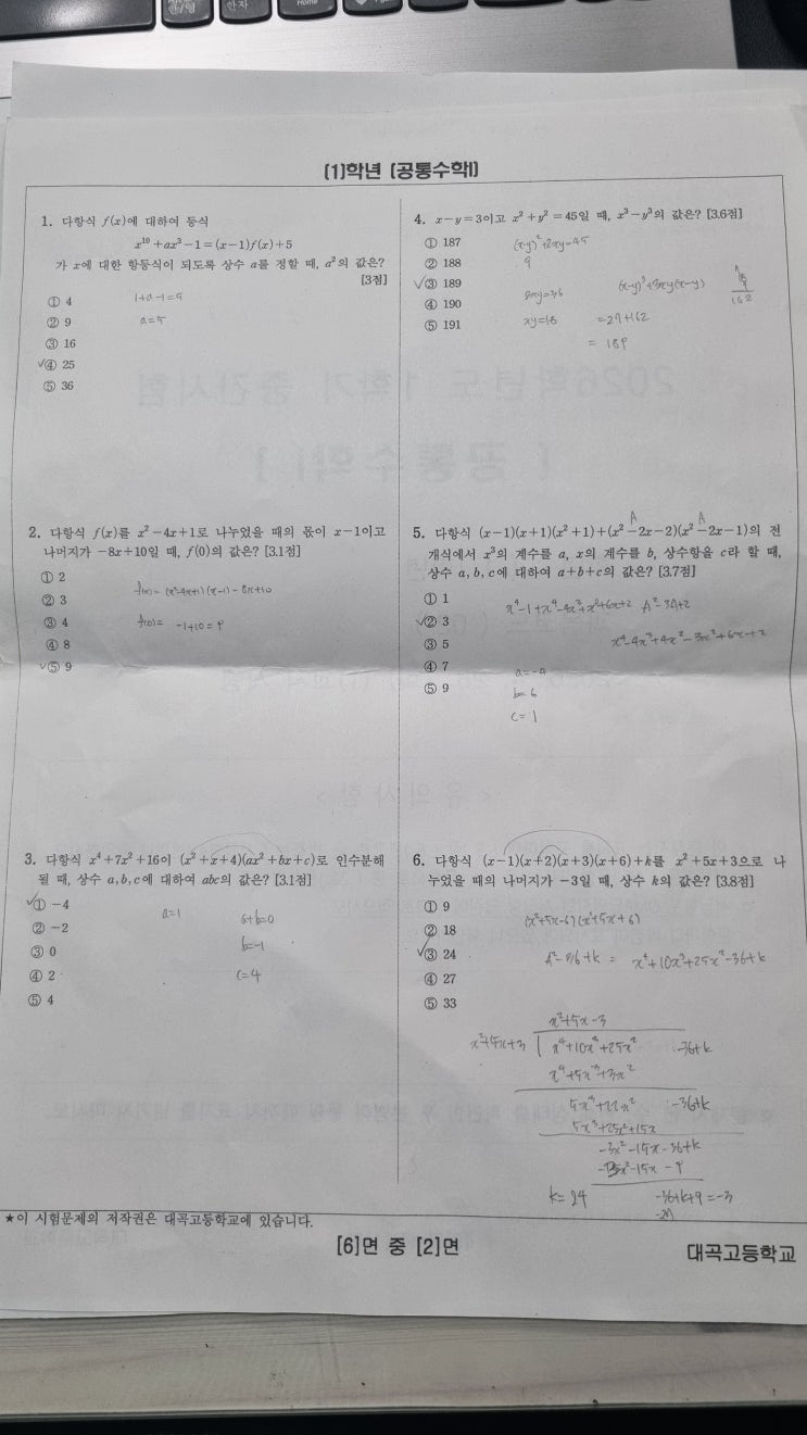 안녕하십니까 도원동 대곡지구 대곡2지구 어머님들. 도원동 대곡지구 최고의 중고등전문수학 티엔씨 수학입니다. 이번에 중학교에서 고등학교에 올라온 대곡고 도원고 1학년 학생들이 좋은 성적을 거둘 수 있었습니다. 오늘은 대곡고 1학년 시험지를 가지고 내신 분석 및 어떻게 좋은 점수를 받을 수 있었는지에 중점을 두고 얘기해 드리겠습니다. 먼저 시험지 보겠습니다. 항상 얘기하는것이 최적화 싸움입니다. 이 학생 같은 경우 실수로 1문제 틀리고 다 맞춰 냈습니다. 시험을 풀때 아는게 중요한게 아니라 아는건 기본이고 얼마나 정확하고 빠르게 풀어낼수 있는지가 고등부 최상위권 점수를 결정합니다. 첫장에서 일단 기본적인 학원의 요....... <img src="https://blogthumb.pstatic.net/MjAyNjA0MzBfMjgw/MDAxNzc3NTM5OTI4Nzgx.b0XKXsEUM8JkaHTU6vs2ZxSFeVAD2Q7d5ToDLXVyyFcg.HgwptIh4x4vj-QPWo-w5FmDOIKC9gAXb1ZajcR8xF44g.JPEG/KakaoTalk_20260430_180007982.jpg?type=s3" />
