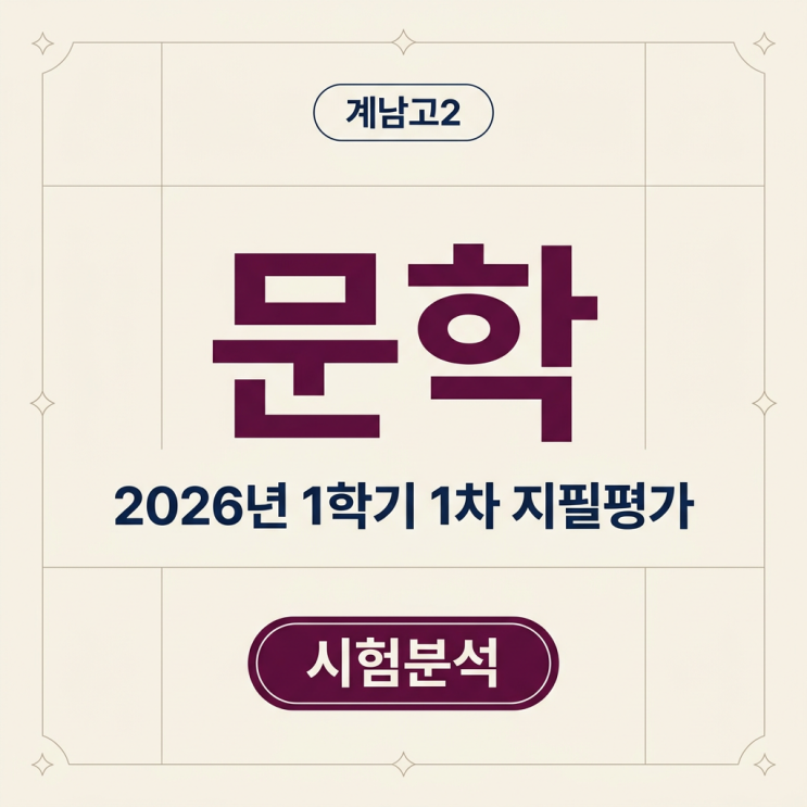 안녕하세요. 학생별 약점을 꼼꼼하게 점검하고 학교별 시험 스타일에 맞춰 준비하는 채움학원입니다. 시험 총평 이번 계남고2 문학 시험은 교과서 수록 작품을 중심으로 출제되었으며, 전체적인 난이도는 평이한 편이었습니다. 문항 구성은 작품의 기본 내용 이해, 표현상의 특징, 화자의 정서와 태도, <보기>를 활용한 감상 문제가 고르게 출제되었습니다. 외부 지문은 독립 지문으로 길게 출제되기보다는 14번, 20번 문항의 <보기> 형태로 제시되었습니다. 따라서 외부 작품 자체의 깊은 배경지식보다는, 교과서 작품과 비교하여 공통점·차이점을 파악하는 능력이 중요했습니다. 전체적으로는 학교 내신 특유의 암기형 문제보다는....... <img src="https://blogthumb.pstatic.net/MjAyNjA0MjVfMTIw/MDAxNzc3MTA3ODk0OTQ2.RkDlx8kWtlq5L0520QzIDCVWnRthIOIp0Tq9FHXEoqEg.A0LqyiD0-J5dVBIYid2YiWkVxoHGpbeXWZfydoqtJusg.PNG/eSivdPeH.png?type=s3" />
