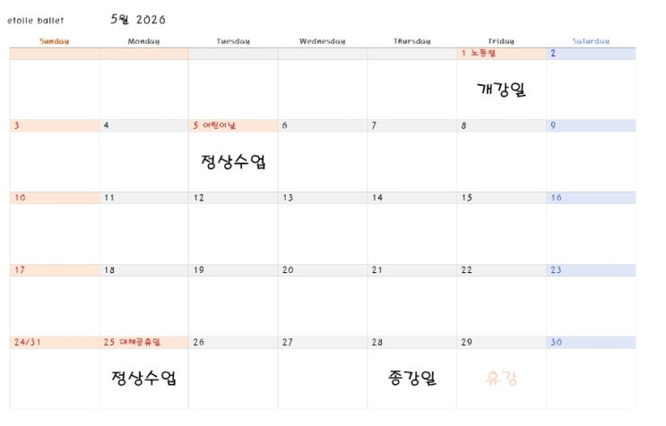 5월 일정표 - 전주 성인발레 전문 에뜨왈 발레학원