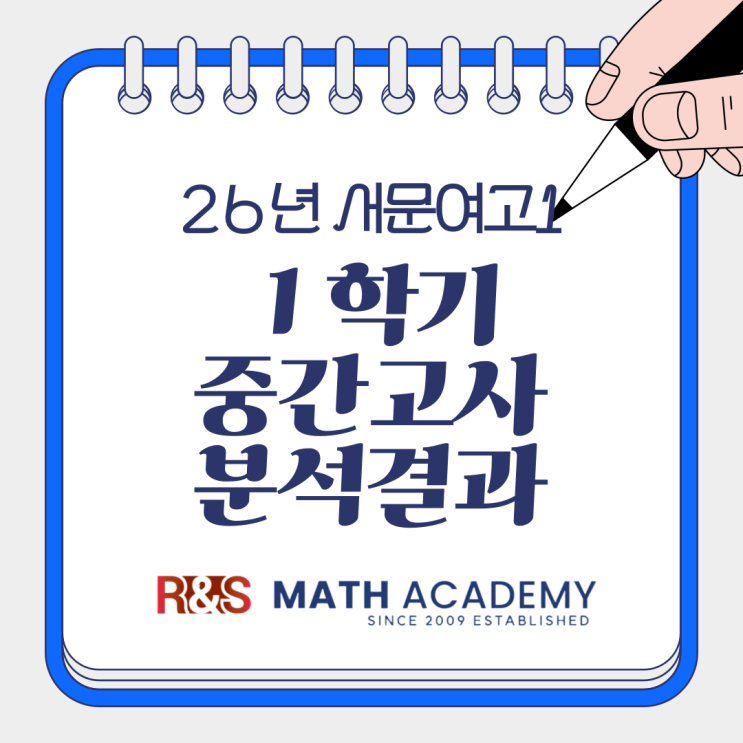 서문여고 1학년 1학기 중간고사 수학 분석 결과입니다. 첫 시험 치른 서문여고 1학년 학생들 넘 고생 많았습니다!!! 남은 과목들도 잘 마무리하고 다시 만나요 우리는 5/2 토요일 바로 기말 대비에 돌입합니다 서문여고 1학년 기말 대비 수업 문의 및 상담은 아래 전화로 ▼ 누르면 전화연결 <img src="https://blogthumb.pstatic.net/MjAyNjA0MjVfMTQ4/MDAxNzc3MDQ0OTAyMzUw.DKDPSSRM3LTf8tTf43hJSlodOWsuXfBVgyfp0d3JLjkg.tjz8aktjoahKnybEYXclOJOe4sgNB3HR_aXP0jDjZnIg.PNG/%C7%D0%BF%F8%BA%ED%B7%CE%B1%D7%C7%A5%C1%F6-008.png?type=s3" />
