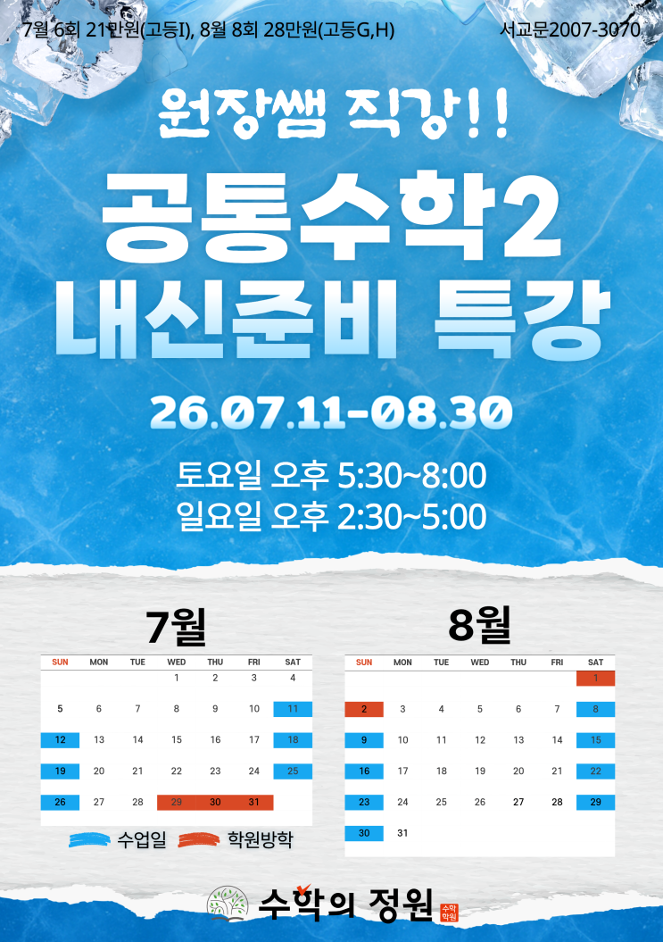 [침산동 수학학원] 공통수학2 여름방학 특강