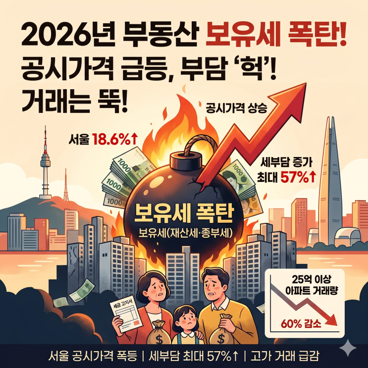 2026년 공동주택 공시가격이 확정되면서 강남 3구(강남·서초·송파)를 비롯한 서울 주요 지역 주택 소유자들의 보유세 부담이 크게 늘어났습니다. 서울의 공시가격 상승률은 18.60%로 전국 평균(9.13%)을 크게 웃돌았으며, 특히 강남구(25.83%)와 송파구(25.46%) 등은 폭발적인 상승세를 보였습니다. 이에 대응하는 강남 지역 소유자들의 주요 행보와 대응책을 알아보면 다음과 같습니다. 1. 적극적인 이의신청을 통한 공시가격 조정 강남 지역 소유자들은 정부의 공시가격 산정에 대해 적극적으로 의견을 제출하며 공동 대응에 나섰습니다. 올해 접수된 이의신청 건수는 1만 4,561건으로 5년 만에 최대치를 기록했으며, 이 중 서울 지역이 약 70%....... <img src="https://blogthumb.pstatic.net/MjAyNjA0MjlfMTcy/MDAxNzc3NDQxOTIwMDA0.JIfBG2tmKpACP12XTh1ZBDacqhTiXnfW7PL5MhM-RVwg.2ksD9mXaj0vx07IbkRw1kaaL71pYYNV_N7Qg8GowE3og.PNG/Gemini_Generated_Image_aq3az2aq3az2aq3a.png?type=s3" />
