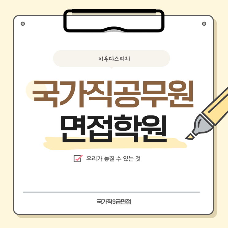 안녕하세요. 국가직공무원면접학원 이루다스피치입니다. 다가오는 5월 8일 금요일에 국가직9급 필기시험 합격자 발표가 있을 예정입니다. 면접시험은 5월 28일 목요일부터 6월 2일 화요일까지 입니다. 면접시험까지 한참 남은 것 같이 느껴져 여유로운 마음을 가지시는 분들도 있으실 텐데요. 막상 준비를 하다보면 해야 할 것들이 많아 막막함이 커질 것입니다. 생각보다 촉박한 시간인 만큼 지금부터 미리 준비하셔야 합니다. 국가직공무원면접학원에서는 국가직9급면접 준비를 완벽하게 도와드리고 있습니다. 오늘은 국가직공무원면접학원과 함께 본격적인 면접 공부에 앞서 우리가 꼭 알아야 하는 것들에 대해 자세히 살펴보도록 하겠습니다....... <img src="https://blogthumb.pstatic.net/MjAyNjA0MjlfMTk5/MDAxNzc3NDE2MjE2OTc4.kkqFC-SdMDy-lZkAGOHhcZGVYO-veIqUONtIvb-YSQ8g.Wo7xILzfPBNls5lTta5S8l86ujFoRXgylVmGWz_49Xwg.PNG/%B1%B9%B0%A1%C1%F7%B0%F8%B9%AB%BF%F8%B8%E9%C1%A2%C7%D0%BF%F8_01.png?type=s3" />