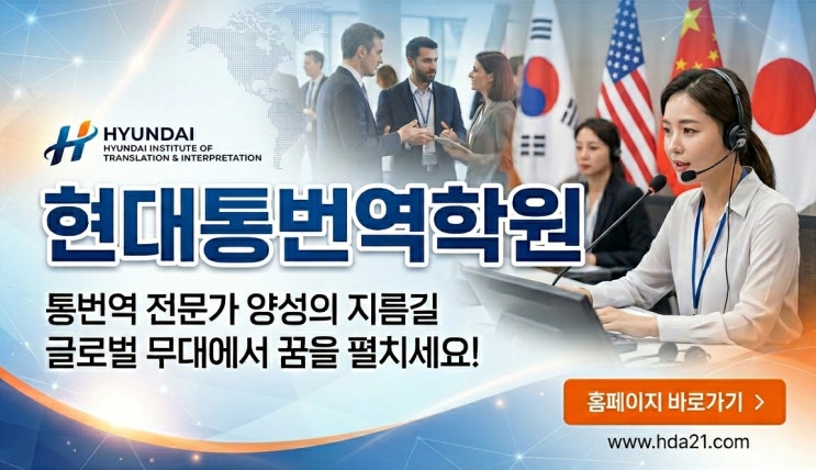 토익 800점, 900점을 넘겼지만 정작 실전 비즈니스 현장에서 입이 떨어지지 않거나 번역 한 문장에도 진땀을 흘리고 계신가요? 높은 어학 성적은 훌륭한 기초가 되지만, '전문 통번역'의 영역은 차원이 다른 훈련이 필요합니다. 오늘은 글로벌 무대의 리더를 양성하는 현대통역학원에서 여러분의 어학 실력을 전문 커리어로 바꿀 수 있는 전략을 소개해 드립니다. 왜 '현대통역학원'이어야 하는가? 단순히 영어 실력을 높이는 곳은 많습니다. 하지만 영어통역사학원으로서 현대통역학원이 가진 차별점은 명확합니다. 본원은 단순 암기 위주의 학습이 아니라, 실제 통번역 현장에서 즉각적으로 사용할 수 있는 '실전 감....... <img src="https://blogthumb.pstatic.net/MjAyNjA0MjVfMjU4/MDAxNzc3MDgyNjc1OTYz.s0ucxzC-OXvmuVUyrsTcUMHeaB4jvnlou-c8K5Awexgg.bxt9kHnK2JWo2oSqdXdQG7lu-3ElbyUG16vVpVsb_Tgg.JPEG/%BF%B5%BE%EE%C5%EB%BF%AA%BB%E7%C7%D0%BF%F8_%C7%F6%B4%EB%C5%EB%BF%AA%C7%D0%BF%F8_%B1%DB%B7%CE%B9%FA%C5%EB%B9%F8%BF%AA%B0%A1_%BE%E7%BC%BA.jpg?type=s3" />