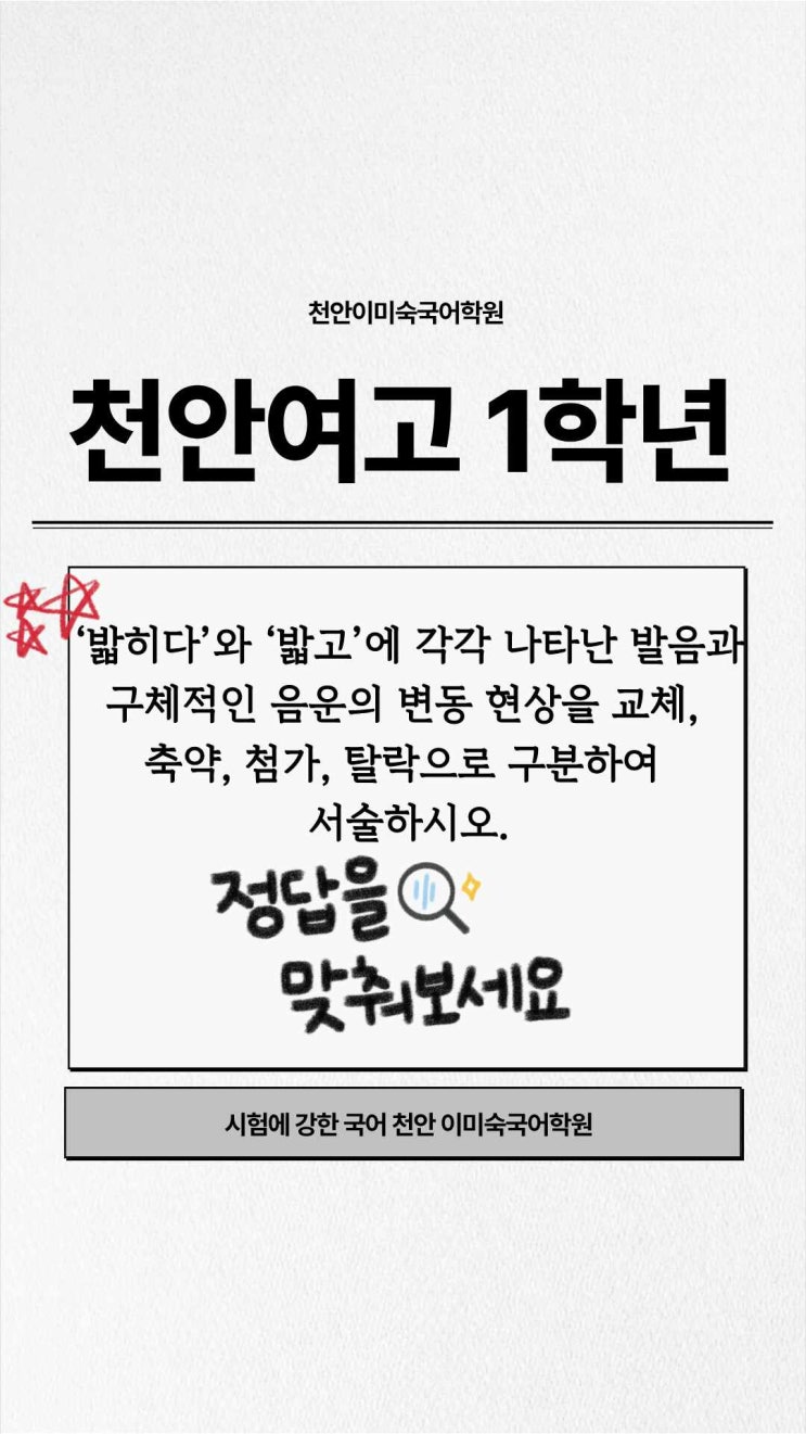 [천안이미숙국어학원] 1회 고사 대비 특별 포스팅! 천안여고, 천안고, 청수고 1학년 출제 예상 문제