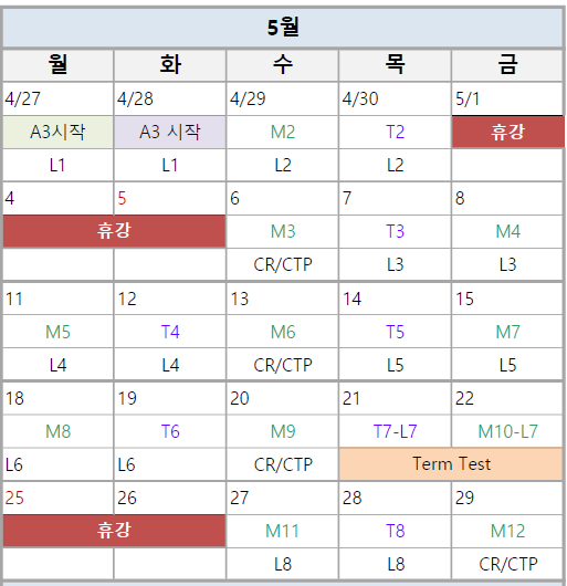 5월 학사일정 안내 - 에이프릴어학원 천안불당