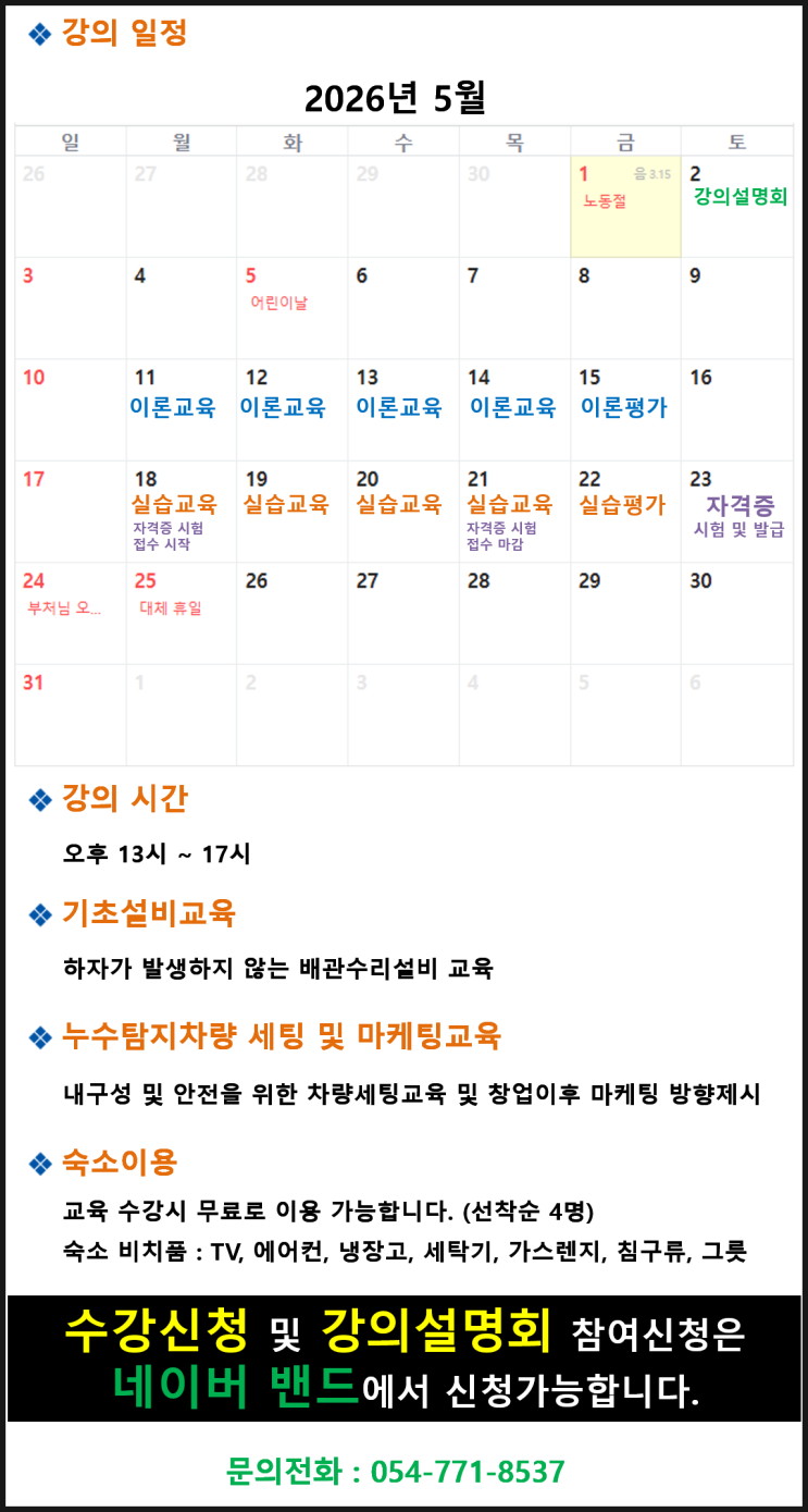 2026년 5월 누수탐지 창업교육 일정안내