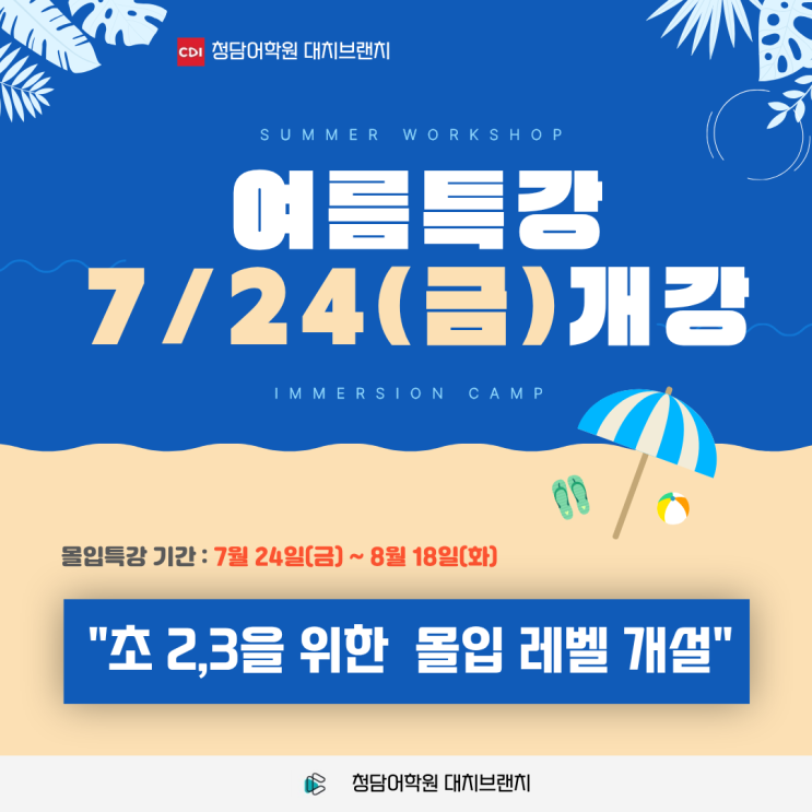 [청담어학원 대치] 26 여름특강 개강 안내