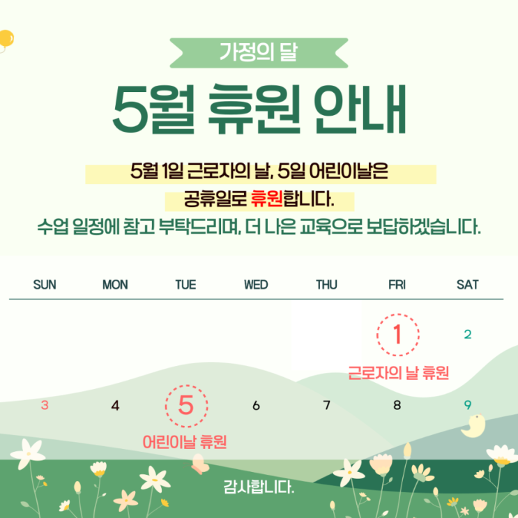 [수학의봄학원]5월휴원안내
