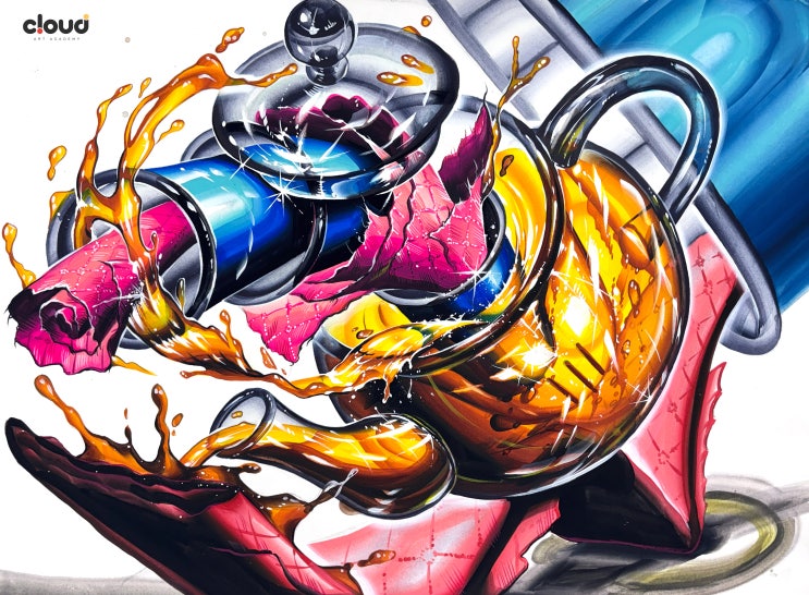안동 옥동 미술학원 클라우드 디자인 입시반 2026 중앙대 정시 주제 유리주전자&행주&컵 기초디자인 주제부 시범작