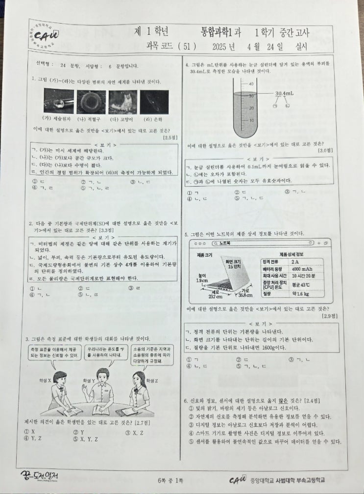 2025 1학기 중간 중대부고 통합과학 분석
