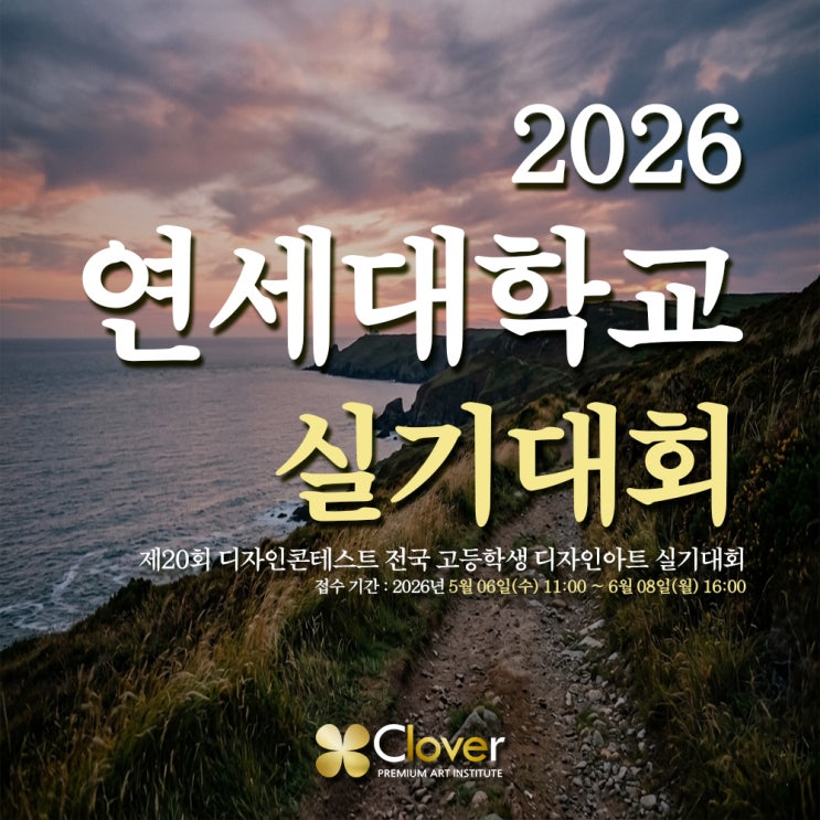 안녕하세요. 미대입시에 궁금하신 분들께 알찬 정보를 보기 쉽게 정리하여 안내드리는 동탄미술학원 클로버 입시정보팀입니다. 연세대학교 서울 본교와 인천에 있는 국제 캠퍼스 그리고 강원도 원주에 위치한 미래 캠퍼스가 있습니다. 미대입시를 준비하는 많은 학생들은 이중 미래 캠퍼스가 가장 익숙할 것이며 미래 캠퍼스만 미대입시 디자인 예술 학부인 산업디자인전공 시각디자인전공 디지털아트학전공 이 있습니다. 그렇기 때문에 매년 연세대 실기대회를 개최하며 올해로 20회를 맞이하게 되었습니다. 특히 연세대학교 실기대회는 은상 이상 수상한 학생들에게 당년 미대입시에 합격하면 장학금 혜택이 주어지고 1. 고3+졸업자+검정고시 2....... <img src="https://blogthumb.pstatic.net/MjAyNjA0MjRfNTAg/MDAxNzc3MDA3NTM1Njg0.f38fY9iBsvtnCEzRJHi04_1vR75OA_e01U3C_cOs0G8g.JJ-oNzarZIYBSm1NCersmxLKmtZw6c6CCf50zbsaPpwg.JPEG/1.jpg?type=s3" />