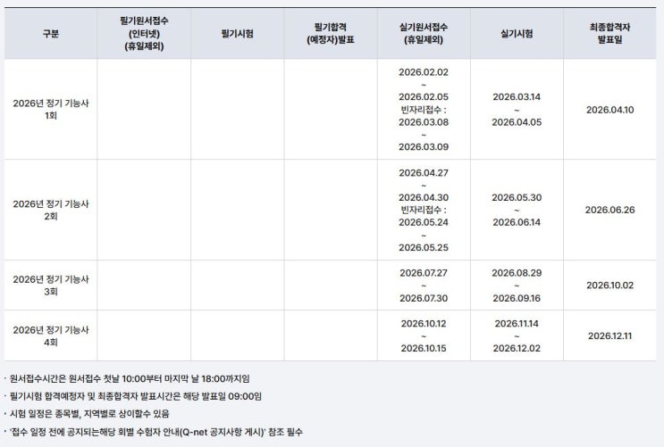 2026년도 도배/타일/건축도장/방수 정기시험일정