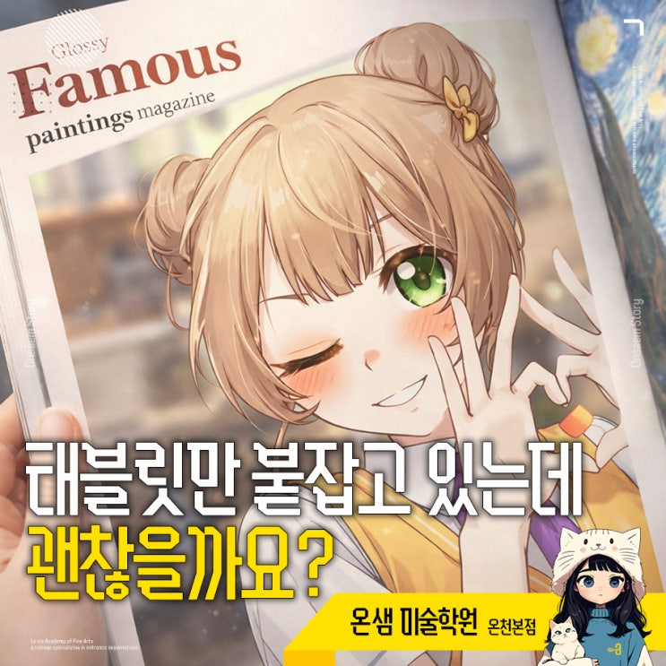 태블릿만 붙잡고 있는데 괜찮을까요? 부산웹툰학원 원장인 제가 직접 겪어본 아이들의 놀라운 변화 요즘 우리 아이들이 종이보다 태블릿 화면에 더 익숙해진 모습을 보면서 세상이 참 많이 변했다는 생각을 자주 하게 돼요. 예전에는 만화를 본다고 하면 공부 안 하고 딴짓하는 줄로만 알았지만, 지금은 웹툰이 하나의 거대한 예술이자 산업으로 인정받는 시대잖아요. 부산웹툰학원 현장에서 아이들을 직접 지도하다 보면, 아이들이 단순히 그림을 그리는 것을 넘어 자신만의 세계관을 구축하고 이야기를 만들어가는 소중한 과정을 지켜보게 됩니다. 저는 우리 아이들이 하얀 도화지나 빈 캔버스 앞에서 느끼는 즐거운 집중력이 학습 태도에도 긍....... <img src="https://blogthumb.pstatic.net/MjAyNjA0MjFfNzkg/MDAxNzc2NzM3NjM3MjEx.3UkHs1B2u2UHbOxzdmzhaajKJhdNa6fKwGBsFRC80IUg.l9axR7oHEoVDXyLTeskDpgpkYWVoVCA9GpZIWWoI8BMg.JPEG/%C5%C2%BA%ED%B8%B4%B8%B8_%BA%D9%C0%E2%B0%ED_%C0%D6%B4%C2%B5%A5_%B1%A6%C2%FA%C0%BB%B1%EE%BF%E4_%BA%CE%BB%EA%C0%A5%C5%F7%C7%D0%BF%F8_%BF%F8%C0%E5%C0%CC_%B0%DE%BE%EE%BA%BB_%BE%C6%C0%CC%B5%E9_%BA%AF%C8%AD_-_%BA%CE%BB%EA_%B9%CC%BC%FA%C7%D0%BF%F8.jpg?type=s3" />