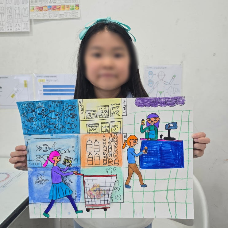 주말에 엄마 손 잡고 가는 마트는 언제나 보물찾기 하듯 설레는 곳이에요! 산더미처럼 쌓인 맛있는 과일들, 끝없이 펼쳐진 과자 나라, 그리고 무엇이든 담을 수 있는 마법의 카트까지! 오늘은 우리 가족의 행복을 가득 담는 마트 장보기 풍경을 그려볼 거예요. "친구들, 지난 주말에 마트 다녀온 사람? 마트에 들어서면 어떤 냄새가 나나요?" "만약 딱 한 가지만 카트에 담을 수 있다면, 친구들은 무엇을 사고 싶었나요? (초콜릿? 장난감?)" "그런데 엄마는 카트에 무엇을 담으셨나요? ' "자, 이제 우리 카트에 내가 사고 싶은 것과 엄마가 담은 것을 골고루 섞어서 아주 무겁고 행복한 카트를 만들어볼까요....... <img src="https://blogthumb.pstatic.net/MjAyNjA0MDFfMTc2/MDAxNzc1MDE5NTgwMjgw.WuJ7Ffhz7-b49ZczMUSorVvkUcFWyZZHy5svjTKE1RIg.WAg73_aVyZsxL0siH2MIKQuYzjKlq4Xx0M46yU_2ALIg.JPEG/1000032962.jpg?type=s3" />