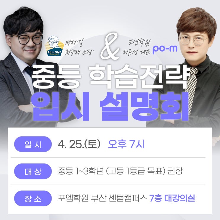 부산 해운대 센텀 중등수학·고입 준비 입시설명회|허준성 대표원장 X 최승해 소장