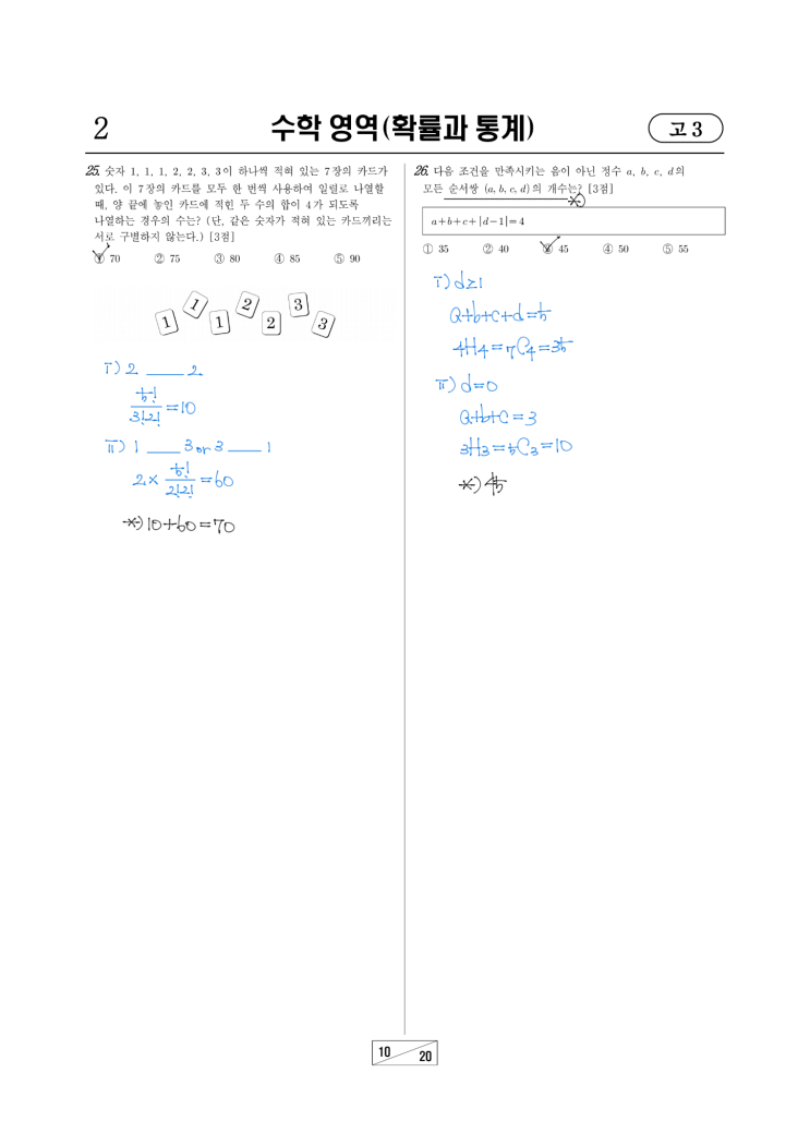 [남천동 수학학원] 박영민 수학 전문 학원 - 2026학년도 3월 학력평가 공통, 확률과 통계, 미적분 손 풀이
