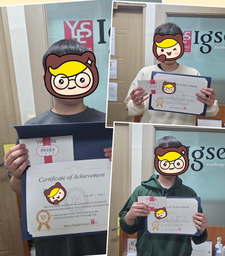 며칠전 윤선생IGSE 부산광안학원에서는 아이들에게 아주 특별하고 의미 있는 시간이 있었습니다~ 바로 3월 중순~말에 진행된 윤선생 학력평가(YSAT) 시상식이 진행되었답니다. 학부모님들께서 가장 궁금해하시는 부분이죠. “우리 아이, 지금 영어 실력이 어느 정도인가요?” 그 질문에 객관적으로 답을 주는 시험이 바로 윤선생 학력평가입니다. 윤선생 학력평가(YSAT)는 왜 중요한가요? 단순히 학원 내 시험이 아니라 ✔ 전국 동일 문제 ✔ 동일 기준 채점 ✔ 객관적인 등급 산출 로 진행되는 평가이기 때문에 아이의 현재 실력을 정확하게 확인할 수 있습니다. 특히 중요한 것은 시험 ‘결과’보다 결과 이후의 관리입니다. 윤선생IGSE 부산광....... <img src="https://blogthumb.pstatic.net/MjAyNjA0MThfMTE1/MDAxNzc2NTAzMDgzODU0.TdhwmpxuNNOpeqxB51CUsszwEHEAr6tytnOnCAhGr_Eg.5lD7fdl9EyL9s4a5pmrMrQ-8ONs65ns-m-oBDSQ7Sp0g.JPEG/900_GridArt_20260418_175244879.jpg?type=s3" />