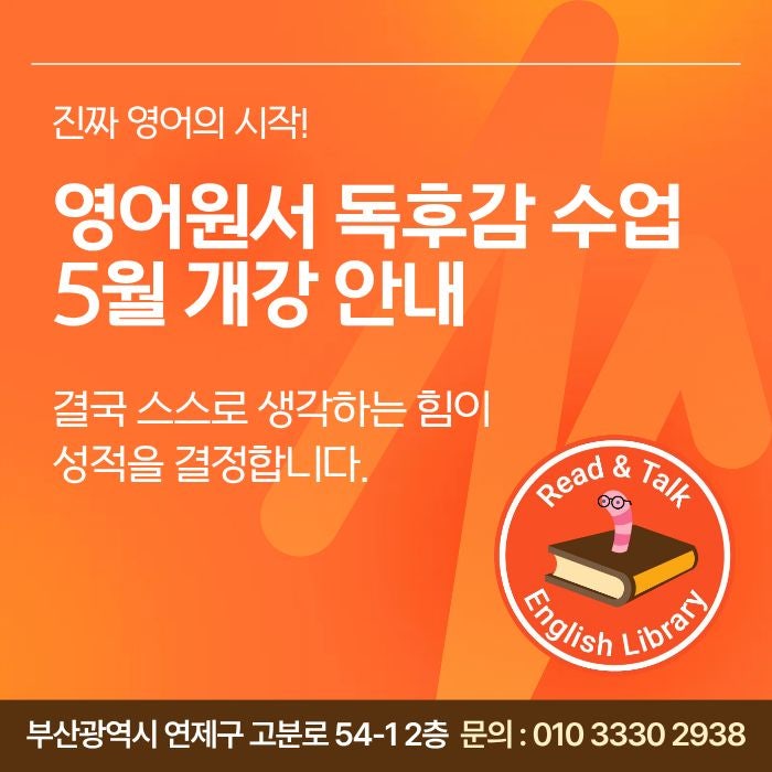 부산 연제구 연산동 영어원서 독후감 수업 5월 개강 안내