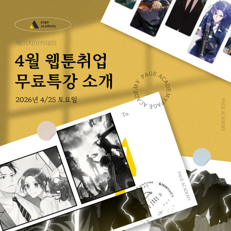 안녕하세요 누구나 작가가 될 수 있는 성수동 웹툰학원 페이지 아카데미입니다! 일전 소개해드렸던 3월 웹툰취업 무료특강이 많은 분들의 성원에 힘입어 성황리에 마무리가 되었는데요~ 글쎄 예정되어있던 신청기간보다 이르게 정원에 다달아 마무리되었다고 하더라구요! 많은 분들이 웹툰업계로의 취업에 관심이 많으시다는 것을 다시한번 느끼게 된 계기였던 것 같아요~! 페이지아카데미도 더욱 열심히 노력해야겠다는 생각을 하게되었던 특강이였습니다! 이에, 3월 무료특강에 참여하지 못하셨던 분들을 위해 페이지아카데미에서 ‘4/25 토요일’에 다시한번 웹툰취업 무료특강을 진행하기로 하였습니다~! 이번 특강에서는 지난 특강에서....... <img src="https://blogthumb.pstatic.net/MjAyNjA0MTdfMjgw/MDAxNzc2MzgzMzI2NDcz.4-jEufIaPUPhpIvA7gvdcQN594G05ql1gsRCP5WQc0Ig.bAKPPYD_hCjrpz1Rk8qKRsN5FdqGqVXt51xnuH42oS4g.PNG/%BC%BA%BC%F6%B5%BF_%C0%A5%C5%F7%C7%D0%BF%F8.png?type=s3" />