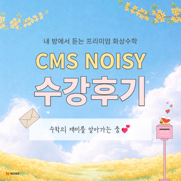 안녕하세요! 초등 사고력수학의 명가 CMS가 만든 실시간 온라인 클래스, NOISY 입니다 :) 오늘은 노이지를 수강하고 계신 학부모님의 리얼 후기를 소개해 드립니다 :) #장기수강생 #풀이과정고민끝 #라이딩걱정해결 #완전만족 수학의 재미를 알아가는 중 아이들 수학공부는 해야하는데, 막상 시키려니 어떤 수학을 시작할지 고민이 많으시죠? 이번 학부모님께서도 아이 수학을 고민하다가 노이지를 선택했는데, 사고력과 교과 개념이 자연스럽게 통합된 수학이라고 만족도가 정말 높다고 후기를 이야기를 해주셨어요 요즘 사고력 수학 배운다고 하면 교구놀이만 하거나~ 문제풀이만 반복하는 데, 노이지는 그런 사고력 학원들과 달리 아....... <img src="https://blogthumb.pstatic.net/MjAyNjAzMjVfMjQ5/MDAxNzc0NDI3OTQ4NjQ3.mfhZgOsZPQ5LdtAuBz95zee8M2iMc29m1uXrfT-zIeUg.f7HfvWbCdocVP7JK_qykyjjk_Uj5OaIGzoUg3MdvuKMg.PNG/1.png?type=s3" />