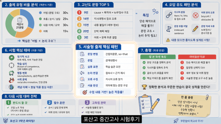 포산고 중간고사 분석입니다. 자세한 문항별 풀이는 다운받아 보셔요. 핵심은 서술형 학교 수업 Review에 달렸다!!!^^ <img src="https://blogthumb.pstatic.net/MjAyNjA0MjVfMjY3/MDAxNzc3MTA3MDY4ODI5.vHVr6gK25u6Jszp84JhJHmWjfByZ8_szAq8CqCTKek8g.c-RYnchjElrWnrn3IN6SO3k2cPZyn-T4SMYvcG_65tsg.PNG/%C6%F7%BB%EA%B0%ED_%C1%DF%B0%A3%B0%ED%BB%E7_%C8%C4%B1%E2.png?type=s3" />