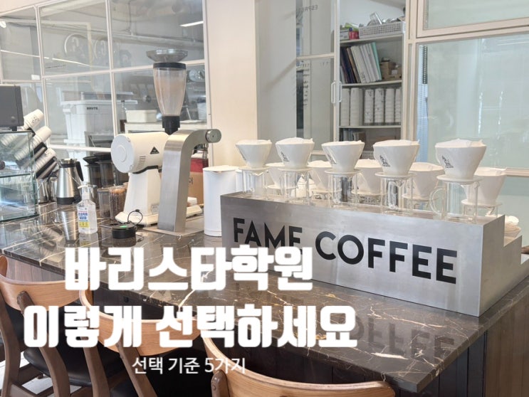 바리스타 교육을 위해 학원을 알아보면 대부분 비슷해 보입니다. 비슷한 자격증 과정, 비슷한 커리큘럼. 그래서 많은 분들이 가격이나 거리만 보고 선택하기도 합니다. 그런데 실제 카페에 취업하게 되면 누군가는 바로 적응하고, 누군가는 다시 처음부터 배우게 됩니다. 그 차이는 생각보다 단순합니다. 어떤 기준으로 학원을 선택해야하는지 오늘은 그 기준을 명확하게 정리해드리려고 합니다. ✔ 1. 강사진의 ‘현장 경험’ 바리스타 교육에서 가장 중요한 건 결국 누가 가르치느냐입니다. 자격증 중심 교육과 현장 중심 교육은 결과가 다릅니다. 단순히 만드는 방법을 알려주는 것이 아니라 왜 그렇게 해야 하는지를 설명할 수 있는지, ....... <img src="https://blogthumb.pstatic.net/MjAyNjA0MTVfMTkw/MDAxNzc2MjMyNTgwMTg3.qdKGBWfpXCJn1aVPhgeLjb-BNuG7lIrmvtwoX0izC4Ag.AORMrGSFkjoHMbID4uitZ_wroCBAnah__nv_uX87F6cg.JPEG/IMG_8862.JPG?type=s3" />