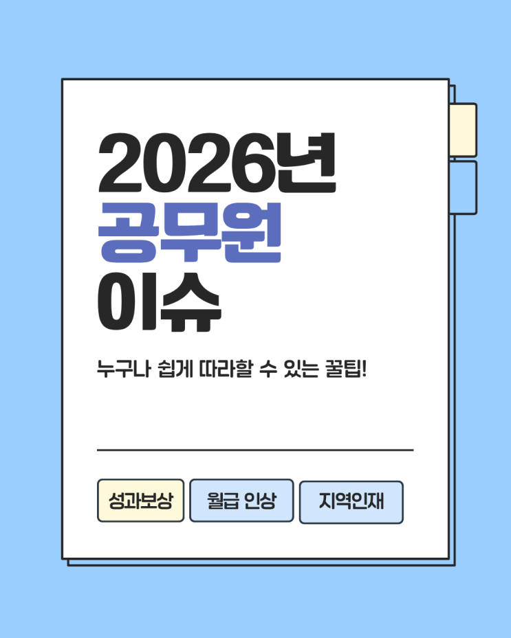 안녕하세요 인천 공경단 학원입니다 오늘은 여러분들에게 공무원 관련 이슈를 pick up! 해서 알려드리는 시간을 가지겠습니다 2026년 공무원들에게는 제도적인 변화가 많이 일어나고 있어요 그렇기 때문에 정말 잘 알아두면 준비할 때 정말 좋을 것 같아요 잘 체크하면서 본인에게 도움이 될지 확인해보세요 공무원 전문 학원 인천 공경단이 알려줄게요 (not 수원) (yes부평) 2026년 공무원 보수 3.5% 인상 저연차 처우 대폭 개선 2026년 공무원 보수는 전년 대비 3.5% 인상되었습니다 특히 저연차인 7~9급 초임(1호봉) 봉급액은 공통 인상분 3.5%에 3.1%를 추가 인상하여 전년 대비 총 6.6% 오르게 되었으며 이에 따라 9급 초임(1호봉) 보수는 연....... <img src="https://blogthumb.pstatic.net/MjAyNjA0MjhfMjkz/MDAxNzc3MzYyNDY2Mzc1.l1eG-EKGUNXR3gRYhZPTDzdNFHRASUvaZka7ibx6zZ0g.Mcv6cEE2i_sIl00LMVHdybztu9K-Xiky-9fmdPdspdMg.PNG/1.png?type=s3" />