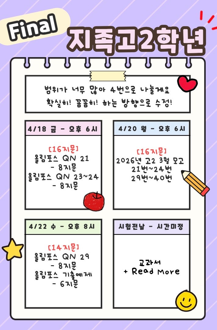지족고2학년 Final(직보) 안내