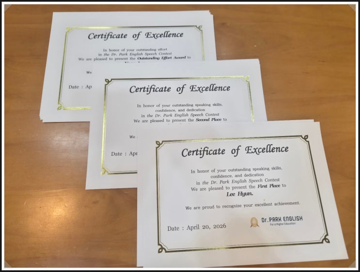 지난 월요일 13일, 닥터박잉글리시에서는 분기별로 진행되는 닥터박잉글리시 스피치컨테스트가 열렸습니다. 이번 영어말하기대회는 지난 3개월간 수업시간에 학습해 온 내용을 바탕으로, 학생들이 직접 글을 쓰고 암기하여 많은 사람들 앞에서 발표하는 뜻깊은 행사였습니다. 단순히 영어 문장을 외워 발표하는 자리가 아니라, 배운 내용을 자기 언어로 정리하고, 첨삭을 통해 완성도를 높이며, 실제로 영어로 말해보는 과정 전체를 경험하는 성장의 무대였다는 점에서 더욱 의미가 컸습니다. 닥터박잉글리시 스피치컨테스트는 어떻게 진행될까요? 스피치컨테스트는 수업시간에 학습했던 여러 주제들 중에서 학생이 스스로 마음에 드는 내용을 고....... <img src="https://blogthumb.pstatic.net/MjAyNjA0MTdfOTIg/MDAxNzc2NDI4NTA4MzMz.PdxtMHo8AtwZTjIr_chpxQCp34B48_PL-tTVBeRJOG8g.O-5evVdbrj1WWJrcmGsSzEiquUffkjXz9pcXlkYffTAg.JPEG/1.jpg?type=s3" />