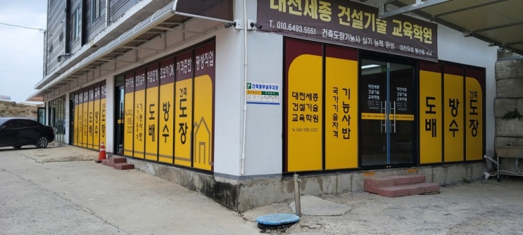안녕하세요. 대전세종중장비학원입니다. 본원 1층에 대전세종중장비학원 부설 대전세종 건설기술 교육학원이 개원을 앞두고 있습니다. 실내공사가 다 끝나고 외관도 다 갖추어 가고 있습니다. 대전세종건설기술교육학원은 도배, 방수, 건축도장 기능사 자격증 취득을 목표로 하는 실기 중심 전문 교육기관입니다. 국가기술자격 시험 기준에 맞춘 커리큘럼으로 실기시험 출제 유형을 체계적으로 분석하여, 합격에 필요한 핵심 기술을 집중적으로 교육합니다. 단순 이론이 아닌 실제 시험과 동일한 방식의 반복 실습을 통해 작업 숙련도를 높이며, 시험장에서 요구되는 작업 순서와 시간 관리까지 철저하게 대비할 수 있도록 지도합니다. 또한 현장....... <img src="https://blogthumb.pstatic.net/MjAyNjA0MjBfMjE1/MDAxNzc2NjY1MTUwMDc4.xQLxQigp3LJ_p8RVwAg99TMaeJE2xMKG0B_-7mFCvekg.tpYxEsydmcmrOkK5uh5seotclw0aasI6qH7GUyGsYDkg.JPEG/%B4%EB%C0%FC%BC%BC%C1%BE%C1%DF%C0%E5%BA%F1%C7%D0%BF%F8_%BA%CE%BC%B3_%B4%EB%C0%FC%BC%BC%C1%BE%B0%C7%BC%B3%B1%E2%BC%FA%B1%B3%C0%B0%C7%D0%BF%F8-1.jpg?type=s3" />