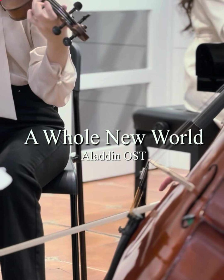 제서3302호 안녕하세요! 음악으로 일상을 여행하는 라마시아음악학원입니다 : ) 알라딘 좋아하시나요? 저는 예전에 영화로 개봉하면서 4D로 봤던게 기억나요 ✨ 저희 학원에서 디즈니 애니메이션 연주하고 싶어 하시는 분들이 많이 계시는데요 ! 히사이시조와 같이 많이 나오는 로망 곡중 하나인거 같아요 알라딘OST 명곡 A Whole New Word 연주 영상을 가져왔어요 ! 바이올린과 첼로로 주고 받는 로맨틱한 대화 원곡이 남녀 주인공의 듀엣곡인 만큼, 이번 3중주 편곡에서는 바이올린과 첼로가 각각 알라딘과 자스민이 되어 서로 대화하듯 선율을 주고 받는것이 포.인.트 바이올린 : 하늘을 나는 듯 청아하고 높은 음색으....... <img src="https://phinf.pstatic.net/image.nmv/blog_2026_04_16_3523/J8nRpUSpCh_03.jpg?type=f480x480" />