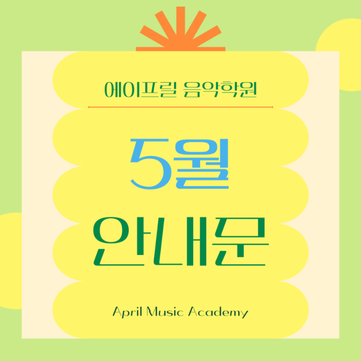 안녕하세요, 에이프릴 음악학원입니다 싱그러운 5월이 시작되었습니다. 가정에 따뜻한 행복이 가득하시길 바랍니다. 학원 어플을 통해 5월 안내문이 업로드되었습니다. 레슨 일정 및 휴강일, 연주회 관련 등 중요한 내용이 포함되어 있으니 꼭 확인 부탁드립니다 항상 믿고 맡겨주셔서 감사드리며, 아이들이 즐겁게 성장할 수 있도록 5월에도 최선을 다하겠습니다. 감사합니다:) 상담문의 010.2616.4028 #송촌동 #송촌동피아노 #송촌동피아노학원 #송촌동음악학원 #송촌동성인피아노 #대전피아노 #대전음악학원 #대전피아노학원 #대전성인피아노 #법동피아노 #법동음악학원 #중리동피아노 #중리동음악학원 #중리동성인피아노 #대덕구....... <img src="https://blogthumb.pstatic.net/MjAyNjA0MDhfNzYg/MDAxNzc1NTgxMzkxMTYz.JPP0pOH6FlFinlD6VtXjQdhadfZVW0jL4A6CaIWdngMg.nEckI3eC_YyorucL8zEHMS33EIUtaIWOBC0AWcLjBcIg.PNG/900%A3%DF%C1%A6%B8%F1%C0%BB%A3%AD%C0%D4%B7%C2%C7%D8%C1%D6%BC%BC%BF%E4%A3%DF%A3%AD001%A3%AD3.png?type=s3" />