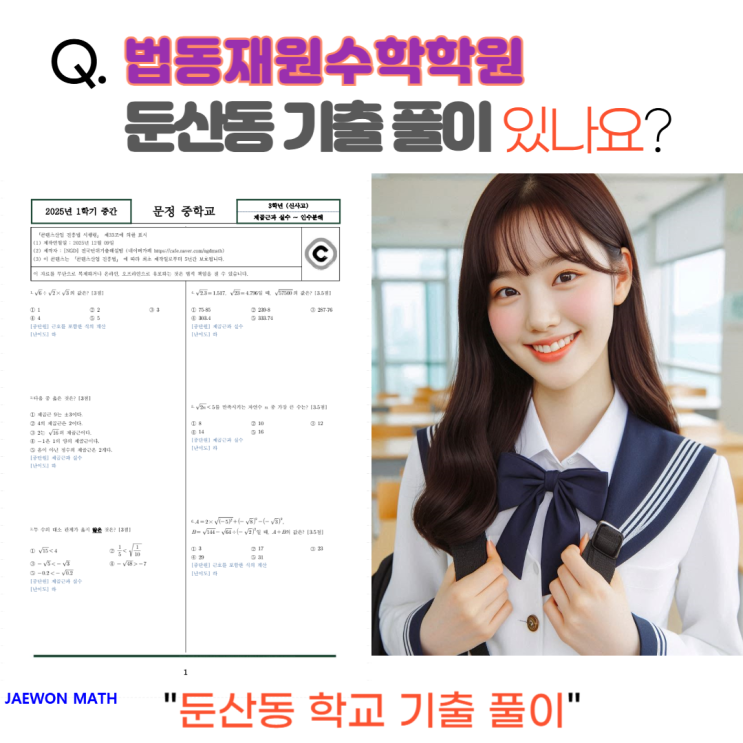 중간고사 시즌, 성적을 바꾸는 결정적 순간입니다 대전 법동 수학 교육의 중심, 법동재원수학 김재원 원장이 전합니다 1. 지금 학원의 분위기, 질문이 폭발하는 시간 중간고사가 진행 중인 지금, 학원의 분위기는 한마디로 정리됩니다. 질문이 쏟아지는 시간입니다. [송촌동수학학원] [법동수학학원] 지역 학생들이 공통으로 겪는 변화는 하나입니다. 바로 ‘이해하고 싶다’는 강한 욕구입니다. 이 시기의 질문 하나가 실제 성적을 바꿉니다. 2. 시험 직전, 성적을 결정하는 것은 속도 시험 기간에는 새로운 문제를 많이 푸는 것이 중요하지 않습니다. 틀린 문제, 헷갈리는 개념, 애매한 이해를 얼마나 빠르게 해결하느냐가 핵심입니다. [법동선....... <img src="https://blogthumb.pstatic.net/MjAyNjA0MjhfMjQy/MDAxNzc3Mzc2NjIzNzU5.nsbsAqffjPzKKNDbsqSqio_aZ-iQEUmZ05OL_crNILMg.pwVWIHo_o2XH8gJM-oO4g-L0gtPelaRTC0PF0nekiuAg.PNG/%C7%F5_5-001_%281%29.png?type=s3" />