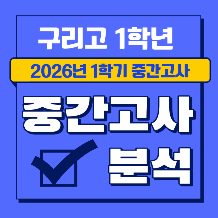 안녕하세요, 구리고스에듀 김영철 원장입니다. 구리고 1학년 친구들의 26학년도 첫 시험, 1학기 중간고사를 분석해보겠습니다. 1. 출제 유형 분석 (1) 총 문항 : 객관식 25문항 문항 수는 적었지만, 시험지 내 정보량이 많고(총 10페이지), 새로 해석해야 하는 <보기>나 외부지문도 많았기 때문에 시간이 여유롭게 남는 시험은 아니었을 것으로 보입니다. (2) 난이도 : 중상 (하-중하-중-중상-상) 이번 시험은 다소 쉽게 출제할 것이라고 말씀하셨던 선생님의 말과 달리 학생들의 체감 난도는 높았습니다. 아래에서 상세한 문항 분석과 함께 앞으로의 학습 방향을 제안해 드립니다. (3) 시험범위 : 교과서 6개 소단원 + 프린트 이번 시험은....... <img src="https://blogthumb.pstatic.net/MjAyNjA0MjVfNCAg/MDAxNzc3MTA2MzM0MzEw.4UwkRXOp6qkt7AhPhUFgw3rjJDoIiDeAadfDYyEe-8Ag.ThMymrNbZRtBEabFLVM4GvLm_uARd8QTxIDqAlDhVHMg.PNG/1.png?type=s3" />